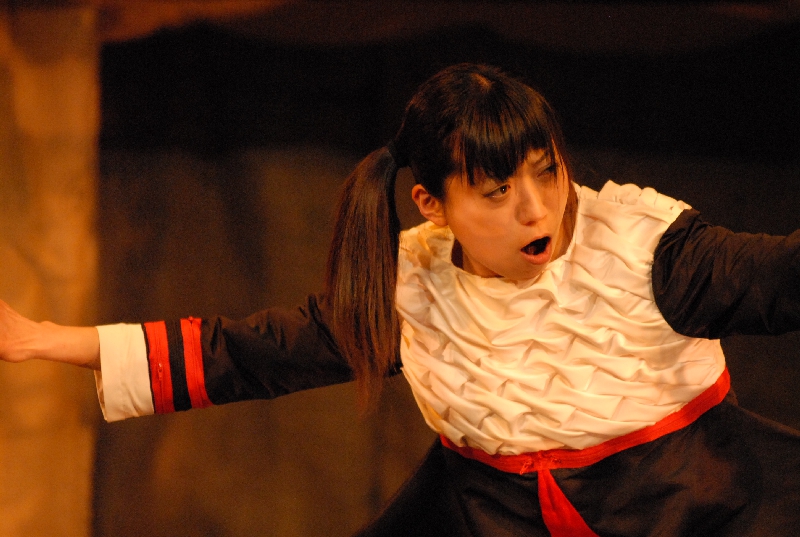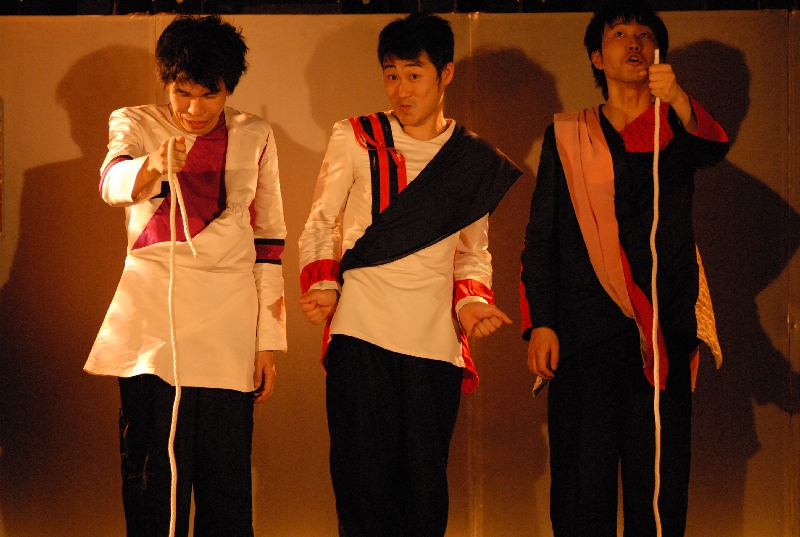 ロープを蛇に見立ててもてあそぶ