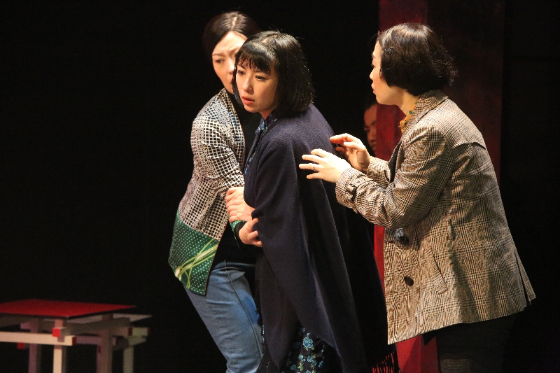 【79】 冬子「私、ここへ来る間、来てからも。ずっと後悔してたのよ。私のしでかした事で皆を巻きこんじゃって。でもアナタの顔を見た途端、あの時の酷い仕打ちが思い出される。赦したいけど、赦せない!お腹の中からそういう声が聞こえてくるの!」 春香「また同じ道をたどる事になる。後悔したんでしょ」 冬子、カウンターの上の果物ナイフを手にしようとする。